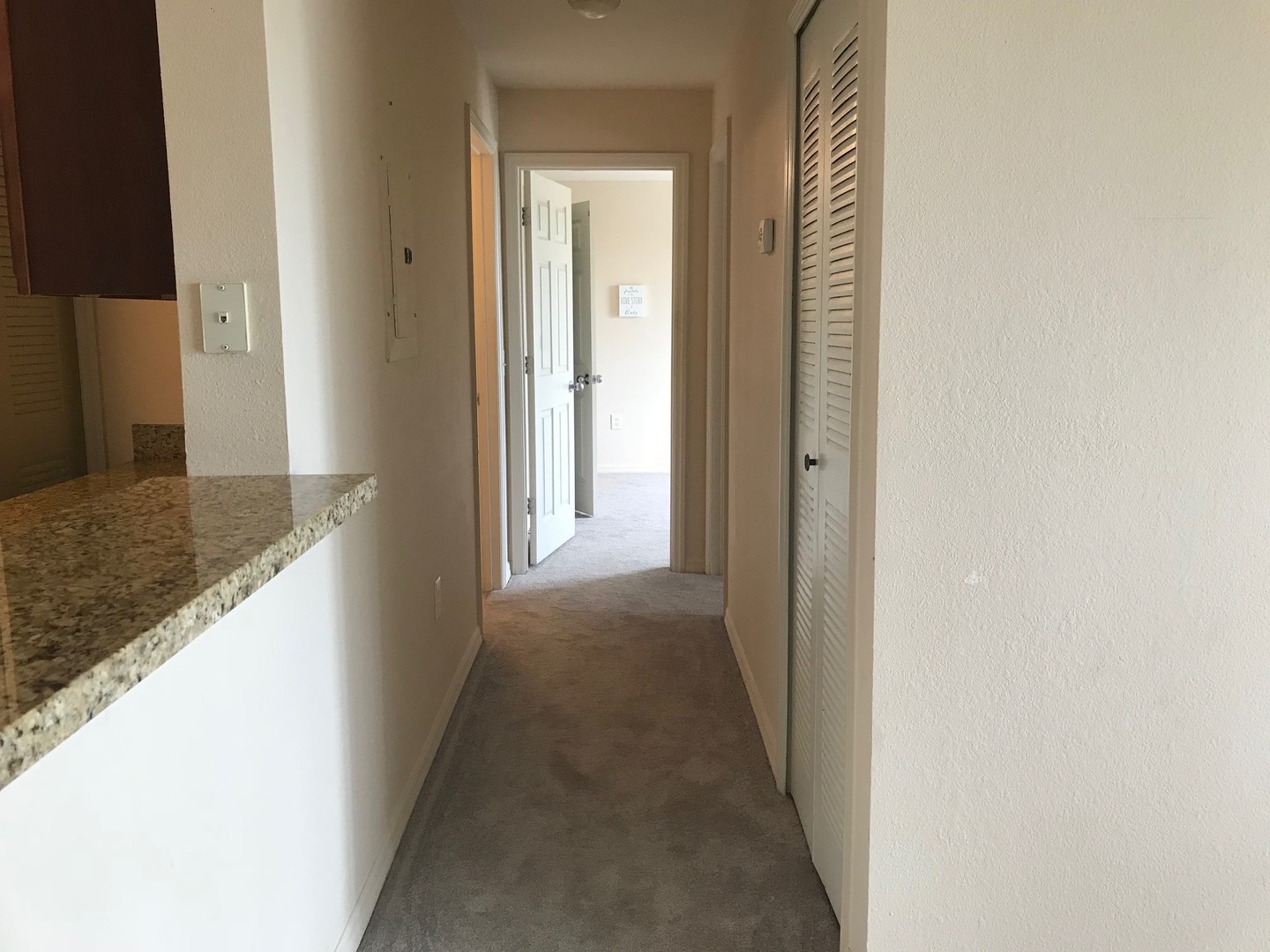 Kitchen has stainless steel appliances and you will find granite counter tops in both Kitchen and baths. Lovely wood look tile in living/dining combo. Newer carpet in hall and bedrooms. Washer/Dryer in unit.